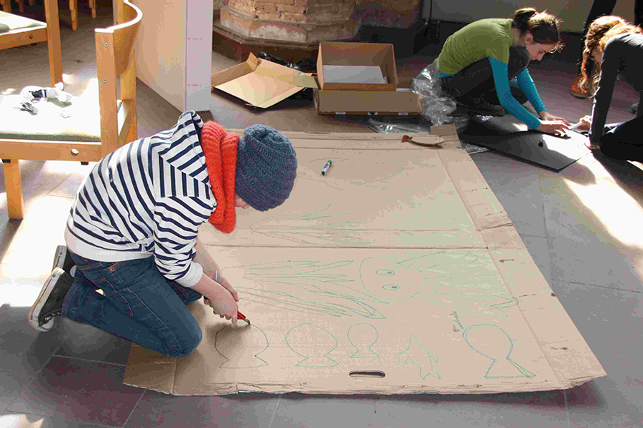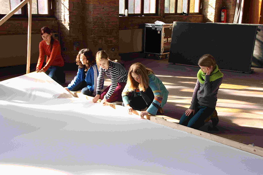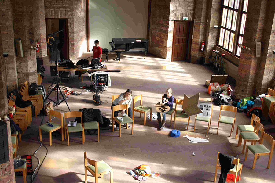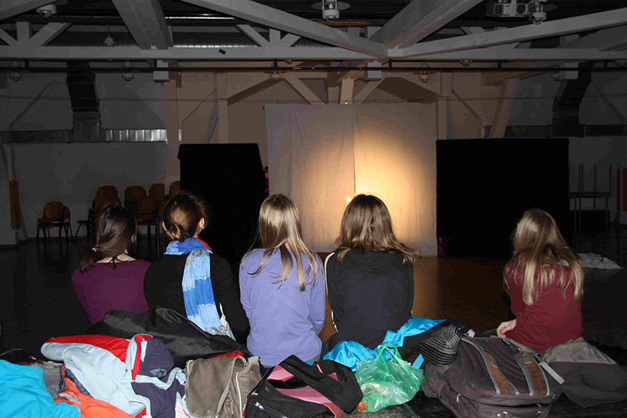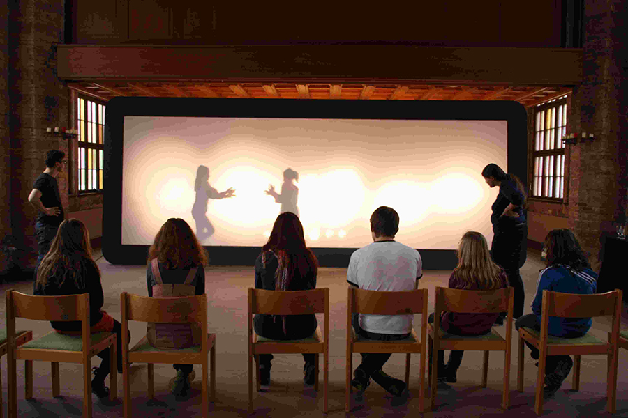 Die jungen Schauspielerinnen und Schauspieler bringen das Drama der Passagiere und der Crew als Schattenspiel